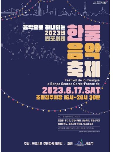 서울 서초구는 오는 17일 서래마을 인근 서울지방조달청 주차장에서 2023 ‘반포서래 한·불 음악 축제’를 연다.