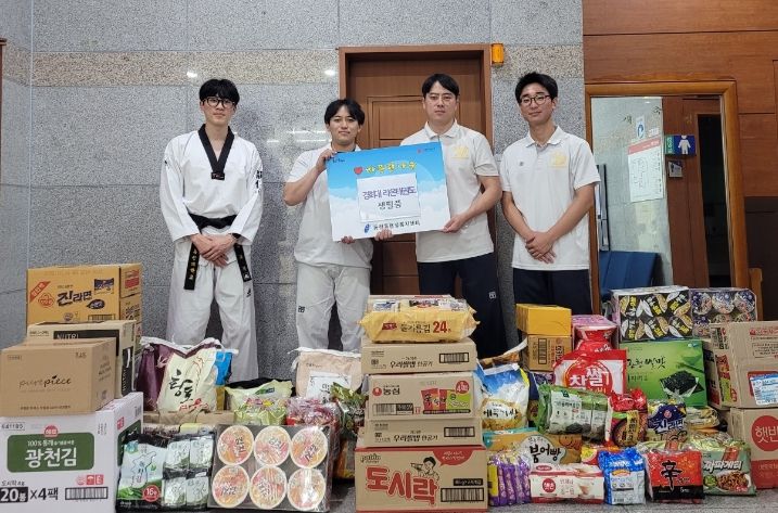[제주교통복지신문 김강석 기자] 용인특례시 수지구 동천동은 경희대 라온태권도가 어려운 주민들에게 나눠달라며 쌀과 라면, 김, 휴지 등 100만원 상당 생필품을 기탁했다고 7일 밝혔다.