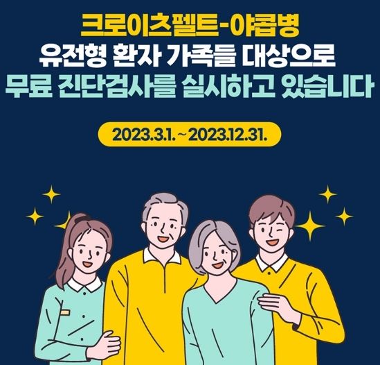 유전형 크로이츠펠트-야콥병으로 판정받은 환자의 직계가족(환자의 조부모, 부모, 형제·자매, 자녀, 손자녀)은 누구나 전국 신경과 의료기관에서 유전자 변이 여부를 무료로 검사받을 수 있다.