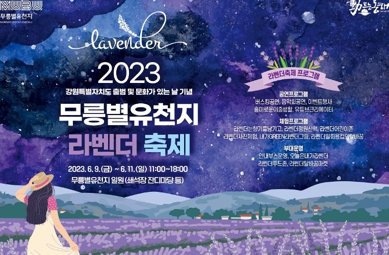[제주교통복지신문 김강석 기자] 강원특별자치도 출범 및 문화가 있는 날을 기념해 전 연령층이 참여할 수 있는 ‘무릉별유천지 라벤더 축제’가 오는 9일(금) 동해 무릉별유천지에서 대단원의 막을 올린다.