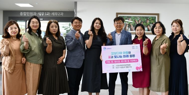 [제주교통복지신문 김강석 기자] 수원시 어린이집연합회 민간·가정분과(영통구회)는 지난 5일 영통구에 수원시 자매도시인 캄보디아 시에립주 아동을 위한 후원물품을 전달했다.
