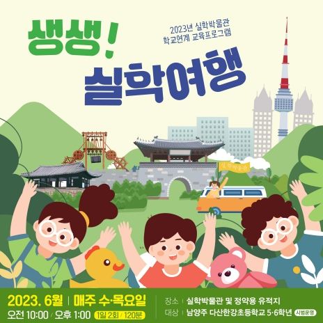 6월 한 달간 진행되는 ‘생생! 실학여행’은 실학박물관과 업무협약(MOU)을 체결한 남양주 다산한강초등학교 5·6학년 학생을 대상으로 시범운영을 진행한다. 지난 3월에 정약용과 홍대용을 주제로 '찾아가는 이동전시'를 경험한 학생들이 직접 박물관에 방문하여 이번 교육에 참여하는 만큼 실학과 정약용에 대해 더욱 깊이 알아가는 특별한 기회가 될 것으로 기대된다.