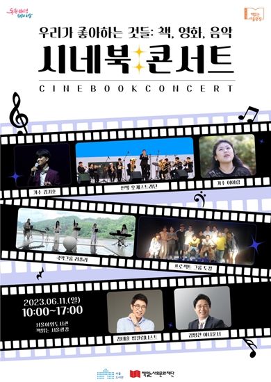 [제주교통복지신문 김강석 기자] 서울광장 열린도서관 ‘책읽는 서울광장’은 (재)책읽는사회문화재단과 함께 6월 11일 11시부터 15시까지 '시네북 콘서트'를 개최한다. ‘우리가 좋아하는 것들 : 책, 영화, 음악’을 주제로 ▴팝 칼럼니스트 김태훈 ▴시각장애인 오케스트라 한빛예술단 ▴국악그룹 라폴라 ▴ 프로젝트 그룹 도킹 과 함께하는 특별 프로그램을 연다.