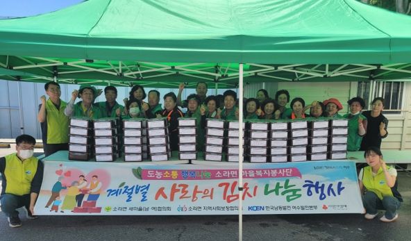 [제주교통복지신문 김강석 기자] 여수시 소라면 지역사회보장협의체와 새마을부녀회는 지난 2일 면사무소에서 ‘사랑의 열무김치 나눔’ 행사를 개최했다.