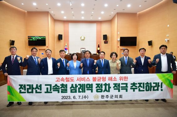 [제주교통복지신문 김강석 기자] 완주군의회가 7일 제277회 완주군의회 제1차 정례회 제1차 본회의에서 ‘전라선 고속열차 삼례역 정차를 촉구하는 건의안을 채택했다.