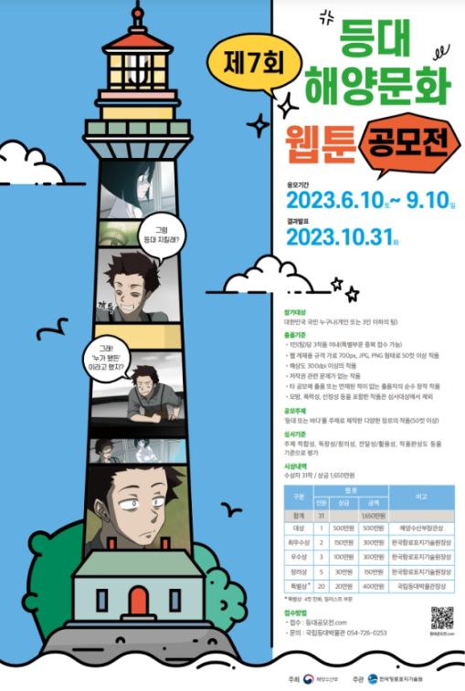 [제주교통복지신문 김강석 기자] 해양수산부는 6월 10일부터 9월 10일까지 ‘제7회 등대 해양문화 웹툰 공모전’을 개최한다.
