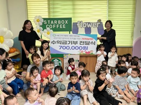 기부금은 최근 어린이집에서 열린 같이의 가치를 아는 ‘가!치!놀!장! 시장놀이’를 통해 마련한 수익금과 어린이집 교직원이 십시일반 모아 70만원을 마련했으며, 관내 어려운 이웃을 위해 뜻깊게 쓰이길 바라는 마음을 담아 전달됐다.