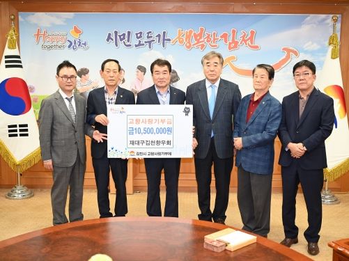 김충섭 김천시장은 “김천을 응원하는 향우들이 있어 든든하다”라며 “고향을 위한 마음으로 기부해주신 향우회원들의 소중한 기부금은 김천시와 주민들의 복리증진을 위해 감사히 잘 활용하겠다.”라고 말했다.