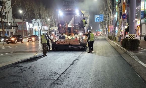 아스팔트 포장 공사는 총 4개 구간으로 나눠서 실시되며 원활한 도로교통 환경을 위해 21시부터 익일 6시까지 시행된다.
