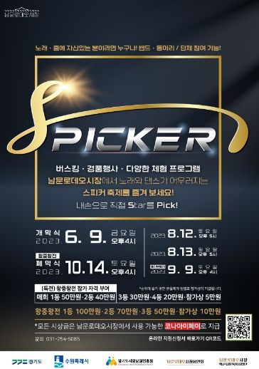 남문로데오시장 혁신시장 육성사업단과 남문로데오시장상인회는 9일 오후 4시에 노래·춤 경연대회 ‘SPICKER’ 개막식을 연다.