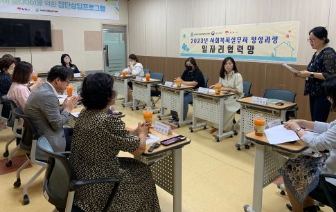 이번 회의는 주간보호센터, 재가복지센터 등 총 10개 업체 센터장과 직업훈련 실무자 등 총 14명이 참석한 가운데 구인처와 구직자들의 정보 공유를 통해‘사회복지실무자 양성과정’ 교육생들의 맞춤형 채용이 이루어질 수 있도록 적극적인 취업 연계 방안에 대해 논의했다.