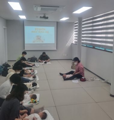 베이비 마사지 교실은 아기와 엄마의 교감 형성과 아기의 면역력 증진 및 또래 아이를 키우는 보호자들 간에 정보를 나누고 공감대를 형성하기 위해 마련됐다.