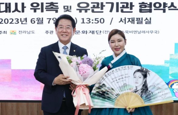 7일 도청 서재필실에서 열린 홍보대사 위촉식과 협약식에는 김영록 전남도지사, 김대중 전남도교육감, 박홍률 목포시장, 김희수 진도군수, 이범헌 한국예총 회장, 이병국 한국미술협회 수석부이사장, 지역 대학 총장 등 20여 명이 참석했다.