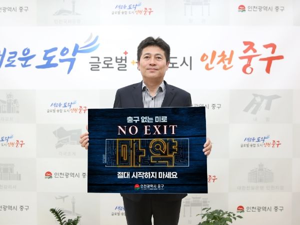 [제주교통복지신문 김강석 기자] 인천시 중구는 김정헌 중구청장이 마약 범죄 예방을 위한 ‘노 엑시트(NO EXIT)’ 캠페인에 동참했다고 19일 밝혔다.