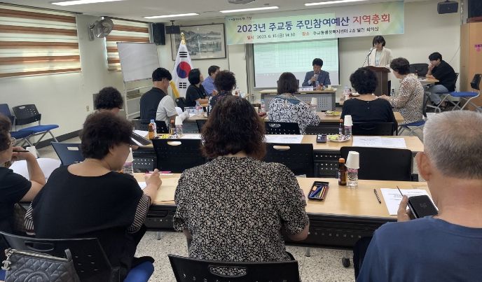 [제주교통복지신문 김강석 기자] 고양특례시 주교동은 지난 16일 지역회의 위원 및 지역주민들이 참석한 가운데 ‘2023년 주교동 주민참여예산 지역총회’를 개최했다.