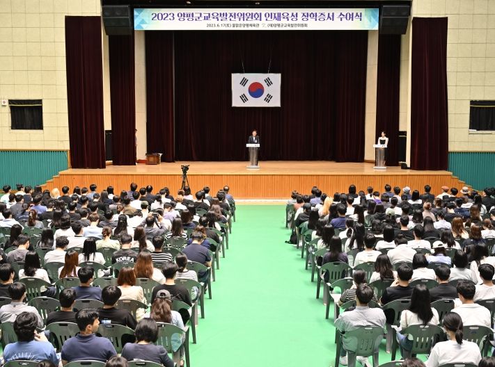 [제주교통복지신문 김강석 기자] (재)양평군교육발전위원회는 지난 17일, 물맑은양평체육관에서 2023년 대학생 장학증서 수여식을 개최했다.