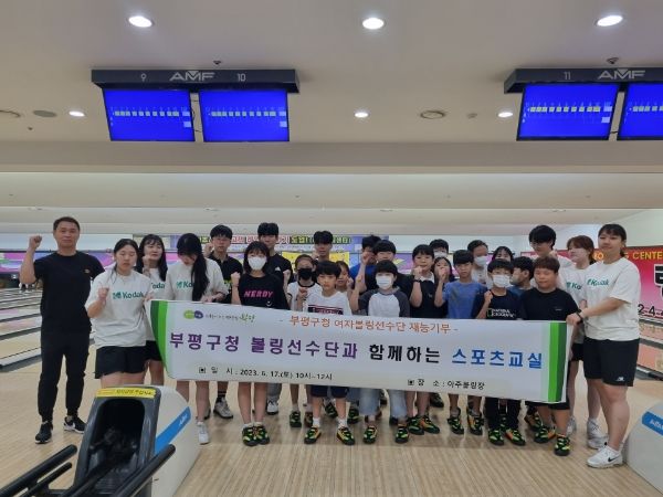 [제주교통복지신문 김강석 기자] 부평구청 여자볼링선수단이 지난 17일 부평구 체육회에서 주관하는 ‘신나는 주말체육학교’에 참여하는 학생 대상으로 재능기부 행사를 진행했다.
