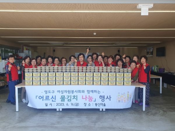 [제주교통복지신문 김강석 기자] 영도구 여성자원봉사회는 지난 6월 16일 봉래동 봉산마을(베리베리굿 봉산센터)에서 관내 저소득 홀로 어르신 70세대에 직접 담근 물김치와 밑반찬을 준비하여 각 세대에 전달했다.