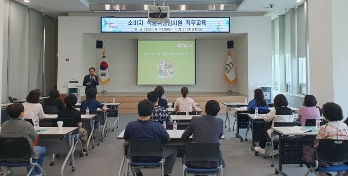 이번 교육은 전문 강사를 초빙해 식품위생법과 식품위생 감시의 이해, 실무에 필요한 소비자식품위생감시원의 임무와 직무수행에 따른 활동 요령 등을 주제로 소비자식품위생감시원으로서 역량을 강화하는 시간을 가졌다.