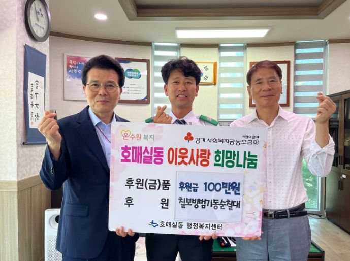 이날 전달한 후원금은 지난 달 20일 칠보방범기동순찰대 주관으로 개최한 불우이웃돕기 일일호프 행사를 통해 마련됐다. 일일호프 행사 당시 관내 어려운 이웃을 돕는다는 따뜻한 취지에 호매실동과 금곡동 단체원, 주민 등 다양한 사람들이 참여하여 따뜻한 정성이 모였다.