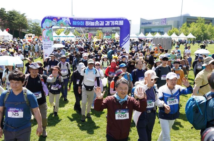 [제주교통복지신문 김강석 기자] 산림청은 6월 17일, 정선 하이원리조트 잔디광장에서 선착순 접수한 3,000여 명의 국민과 함께 제9회 하늘숲길 걷기축제 기념행사를 갖고 걷기행사를 개최했다.