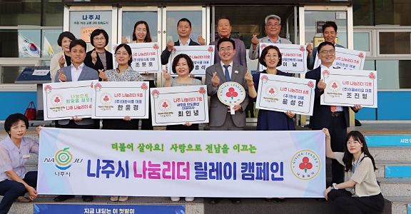 전라남도 나주시는 지난달 제1호 나눔 리더인 윤병태 시장에 이어 최근 나눔 리더 4~12호 가입식을 가졌다고 19일 밝혔다.