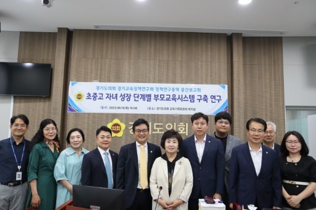 [제주교통복지신문 김강석 기자] 경기도의회 교육기획위원회 위원들로 구성된 경기교육정책연구회(회장 황진희, 더불어민주당 부천4)는 지난 15일 “초중고 자녀 성장 단계별 부모교육 시스템 구축”을 주제로 연구용역 중간보고회를 개최했다고 밝혔다.