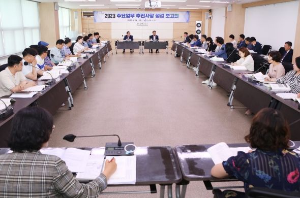 이번 보고회는 각 부서별 간부급 공무원들이 참석한 가운데 민선 8기 주요 업무 추진 상황과 개선방안 등 향후 구정 발전 방향을 토의하는 방식으로 진행됐다.