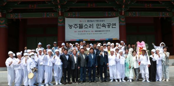 [제주교통복지신문 김강석 기자] 화순군은 6월 17일 10시부터 13시까지 능주 들소리보존회원과 지역 주민, 관광객 등 300여 명이 참석한 가운데 능주면 소재지 일원과 능주 들판 ‧ 능주 역사관에서 대동 한마당으로 풍년 기원 ‘능주 들소리’ 민속공연을 펼쳤다고 밝혔다.