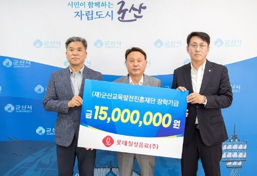 [제주교통복지신문 김강석 기자] 군산시는 롯데칠성음료(주)가 19일 군산교육발전진흥재단에 1,500만원의 장학금을 기탁했다고 밝혔다.