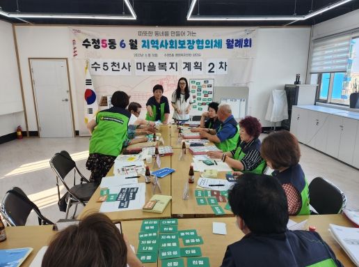[제주교통복지신문 김강석 기자] 부산 동구 수정5동 지역사회보장협의체 마을복지계획단은 2023년 6월'따뜻한 동네를 만들어가는 수5천사 마을복지 계획 2차' 회의를 진행했다. 지난 5월 수5천사 마을복지계획단 구성을 시작으로 두 번째 회의이다.