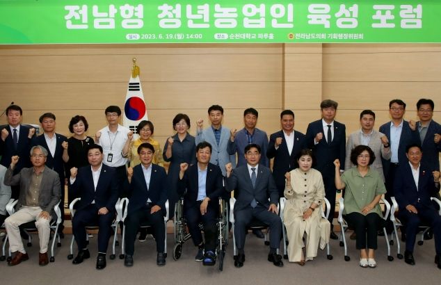 신민호 도의원이 좌장을, 백소현 순천대 교수가 ‘지속가능한 도시·농촌 공동체를 위한 전남형 청년농업인 육성’을 주제로 발제를 맡았으며 엄지범 순천대 농업경제학과 교수, 나상수 농촌진흥청 청년농업인육성팀장, 김선호 전농 광주전남연맹 사무처장, 윤재광 전남도 농업정책과장이 종합토론자로 참여했다.