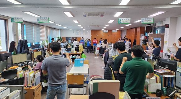 [제주교통복지신문 김강석 기자] 의성군청공무원노조는 지난 16일 의성군청 사무실을 돌며 2024년 공무원 임금인상 요구와 공무원들의 투쟁 참여를 촉구하는 부서선전전을 진행했다.