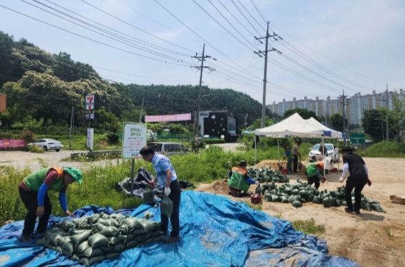 이번 활동에는 화도읍 자율방재단과 관계 공무원 등 20여 명이 참여해 장마철 안전사고 예방을 위해 더운 날씨에도 구슬땀을 흘려가며 모래주머니를 제작했다.