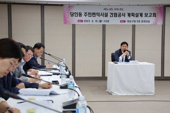 당인동 주민편익시설 건립공사 전면 재설계에 따른 관계자 의견을 수렴하고자 마련한 자리로, 박강수 마포구청장과 관련 부서, 건축 설계업체가 참석해 계획 설계도 보고와 질의응답을 진행했다.