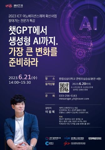 [제주교통복지신문 김강석 기자] 강원정보문화산업진흥원은 21일 한림성심대학교에서 ‘챗GPT에서 생성형 AI까지. 가장 큰 변화를 준비하라’는 주제로 세컨드브레인연구소 이임복 대표를 초청하여 특강을 개최한다고 밝혔다.