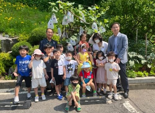 [제주교통복지신문 김강석 기자] 구리시 교문1동 행정복지센터는 교문1동 주민자치위원회에서 시립 딸기원어린이집 어린이들을 초대해 텃밭가꾸기(포도송이 포장)와 포장지 태극기 그리기 활동을 실시했다.