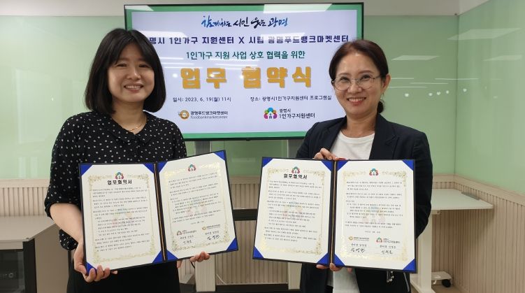 [제주교통복지신문 김강석 기자] 광명시 1인가구지원센터(센터장 신정은)는 19일 1인 가구 대상자 연계 및 지원에 필요한 상호 협력을 위해 광명푸드뱅크마켓센터(센터장 임영란)와 업무협약을 체결했다.
