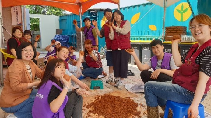 또한, 학생봉사자 회원들은 성인 자원봉사자 회원들과 함께 마을 하천 정화활동의 일환으로 EM흙공을 제작했다. EM흙공은 두 달여 간의 숙성 기간을 거친 후, 오는 8월 중순 경 포동 하천 일대에 투척할 예정이다.