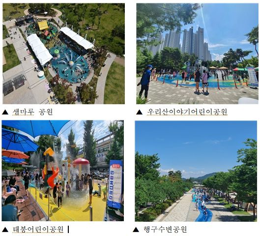 이 밖에도 어깨동무어린이공원, 너름공원, 중앙근린공원, 샘마루공원 바닥분수도 7월 1일부터 8월 31일까지 운영한다.