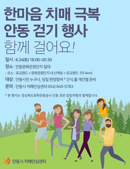 이번 걷기 행사에서는 치매 예방에 좋은 걷기를 실천·홍보해 범시민 치매극복 캠페인으로 열린다. 치매 예방 정보 홍보 및 치매 관심을 제고하기 위한 행사로 치매환자와가족뿐만 아니라 안동시민이라면 누구나 참석 가능하다.