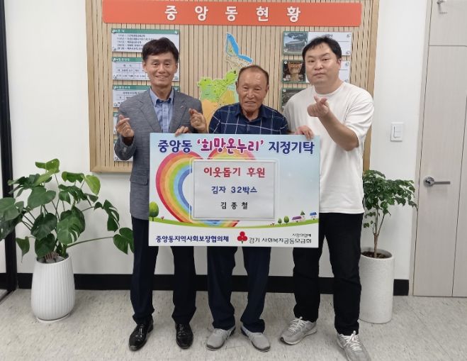 정이화 중앙동장은 “함께하는 중앙동을 위해 기탁해 주신 김종철님에게 감사 드리며 후원물품은 필요한 이웃들에게 잘 전달될 수 있도록 하겠다.”고 답했다.