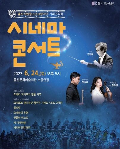 [제주교통복지신문 김강석 기자] 울산시립청소년교향악단(지휘자 금길동)이 오는 6월 24일 오후 5시 울산문화예술회관 소공연장에서 기획연주회 ‘영화(시네마) 콘서트’를 마련한다.