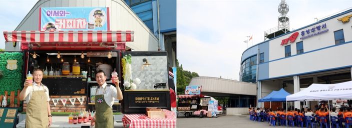 이날 소방서에는 ‘김민성 재즈밴드’가 1시간 동안 야외 버스킹 공연을 진행했으며, 동시에 푸드트럭(커피차)도 지원받아 김경철 소방서장이 직원들에게 직접 음료를 나눠줘 편안하게 공연을 관람했다.