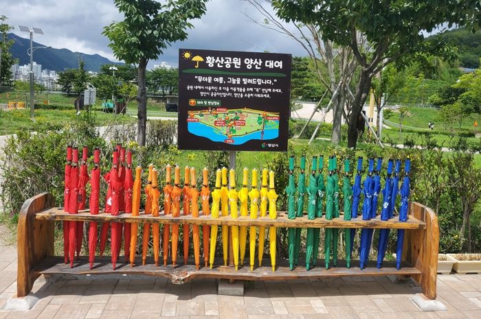 양산시는 여름철 온열질환 예방을 위하여 황산공원 이용객에게 그늘을 제공할 수 있는 안심양산 대여 서비스를 오는 7월 초순부터 재개할 예정이다.