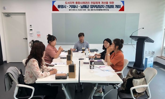 이날 간담회에는 통영시, 거제시, 남해군 3개 시·군의 통합사례관리사와 통합사례관리 담당공무원이 참석했으며, 도서지역의 통합사례관리 전달체계 개선방안을 마련하기 위한 회의를 진행했다.