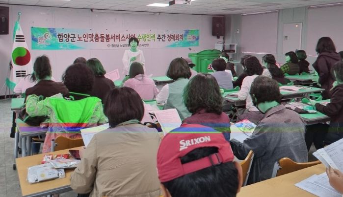 노인맞춤돌봄서비스사업 정례회의는 매월 격주, 2시간동안 노인맞춤돌봄서비스 생활지원사를 대상으로 함양군 주요 추진사업 홍보, 노인돌봄 관련 역량교육 및 친절교육, 각종 서비스 연계 교육 등을 중점으로 실시하고 있다.