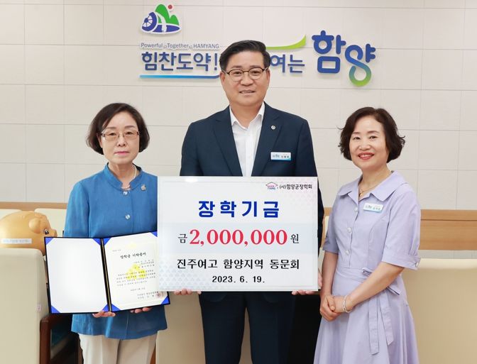 [제주교통복지신문 김강석 기자] 진주여고 함양지역 동문회(정일남회장, 회원 15명)에서 지난 19일 군수실을 방문하여 함양군 장학회에 장학금 200만원을 기탁했다.