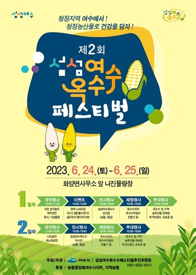 여수시가 주최하고 섬섬여수옥수수페스티벌 추진위가 주관하는 이번행사는 ‘청정지역 여수에서! 청정농산물로 건강을 담자!’ 슬로건 아래 여수시 대표 농특산물 브랜드로 육성하고 있는 ‘섬섬여수 옥수수’를 소재로 다양한 행사가 마련된다 .