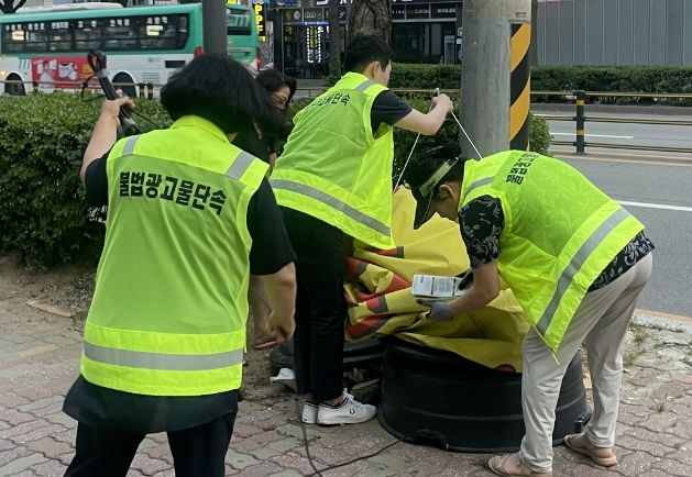 저녁 7시 현장에 나선 단속반은 2시간여에 걸쳐 불법으로 설치된 광고물을 철거하고 광고주를 계도하는 활동을 펼쳤다. 또 광고주에게 불법 광고물의 유형과 적법한 광고 절차를 안내하며 올바른 광고문화 정착에 동참해 줄 것을 당부했다.